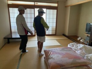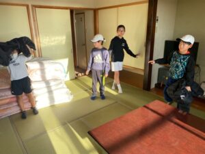 コートに向かう前の光景ですが、ツバサがホテルのゲームをしています。子供達曰く、彼女はとても上手いようです。