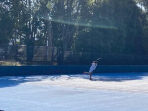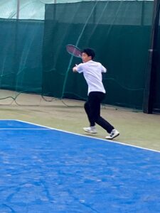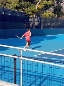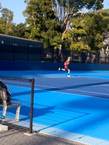 ヒロの試合を私の横で観ていたミチザネは応援もしていましたが、「早く試合がしたい!」と数分おきに言っていて、うるさくてしょうがなかったのですが、1号の試合からそれほど経たずに始まりました。相手は第7シード。でも思ったよりという感じと、ミチザネが迫力のある良いプレーをしていたので、これはもしかしたら!と思ったのですが、まだヤツはミチザネという感じで、ミスが多い… なので負けてしまいましたが、いいな!と思ったのは、ヤツのプレーには全く迷いがないこと。これは武器です。だからいずれミスが減った時には、きっと化けるでしょう。楽しみ!
